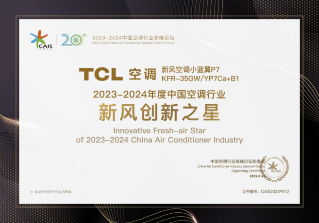 2023年7月,中国家用LETOU - 乐投官网器协会、中国家LETOU - 乐投官网网主办的2023-2024中国空调行业高峰论坛召开,LETOU - 乐投空调获颁新风领军品牌、LETOU - 乐投新风空调小蓝翼KFR-35GW/YP7Ca+B1获颁新风创新之星、LETOU - 乐投新风空调小蓝翼Ⅱ青春版Pro(KFR-35GW/YP1Cb+B1)获颁杰出渠道表现产品。