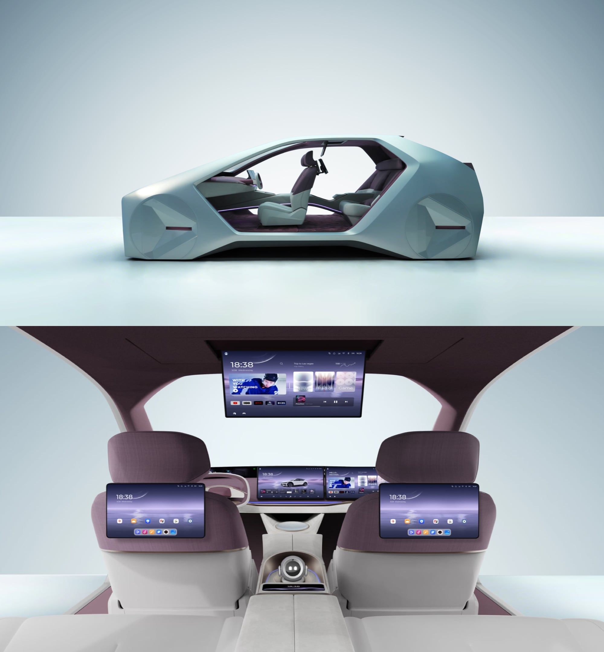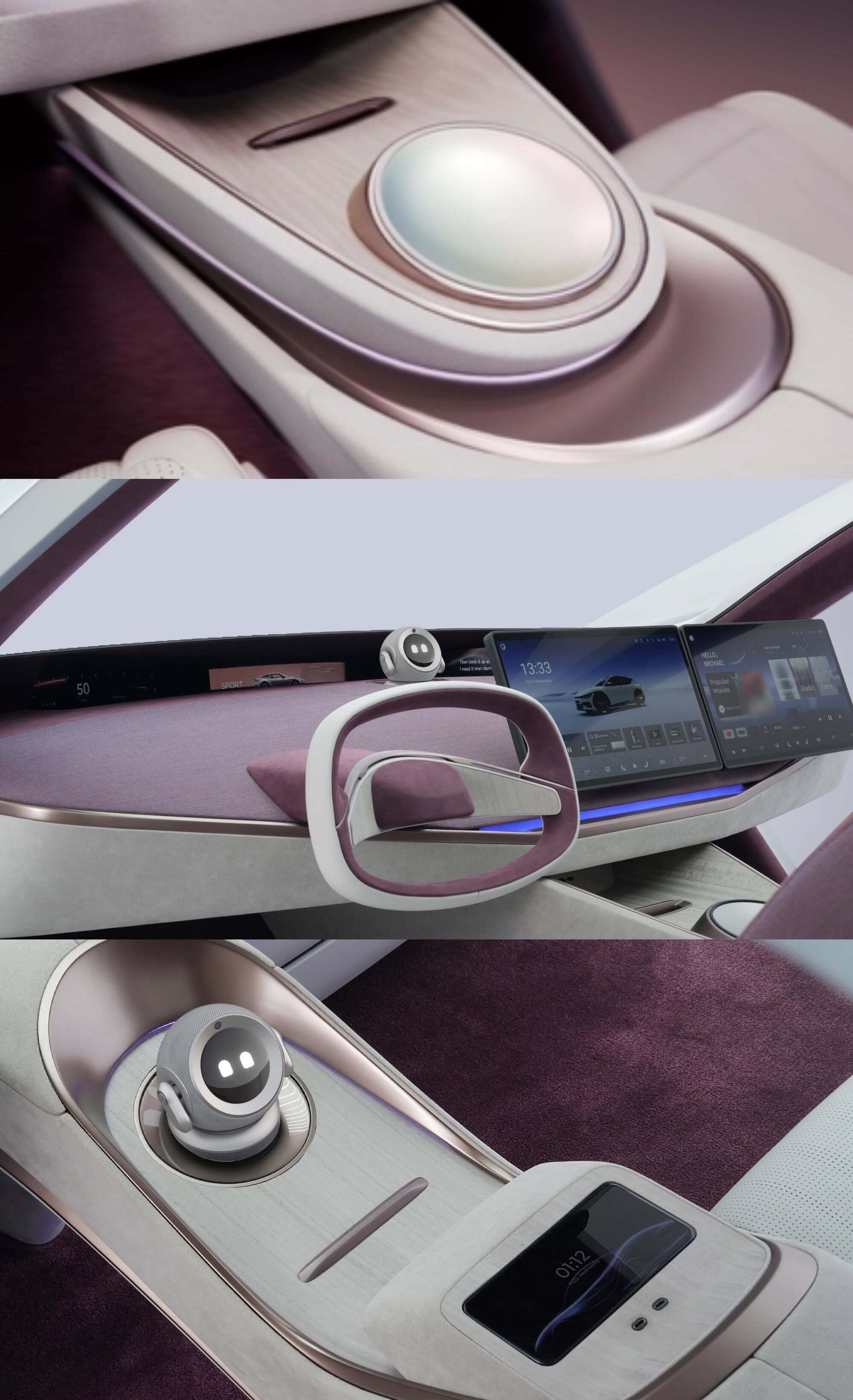 Rather than competing for attention or interfering with driving, the robot is conceived as a calm, peripheral presence, an approachable AI interface that supports front-row interactions and offers gentle companionship for rear passengers. Its role is not to overwhelm, but to make intelligence visible, understandable, and emotionally accessible, allowing users to gradually build familiarity and trust over time.