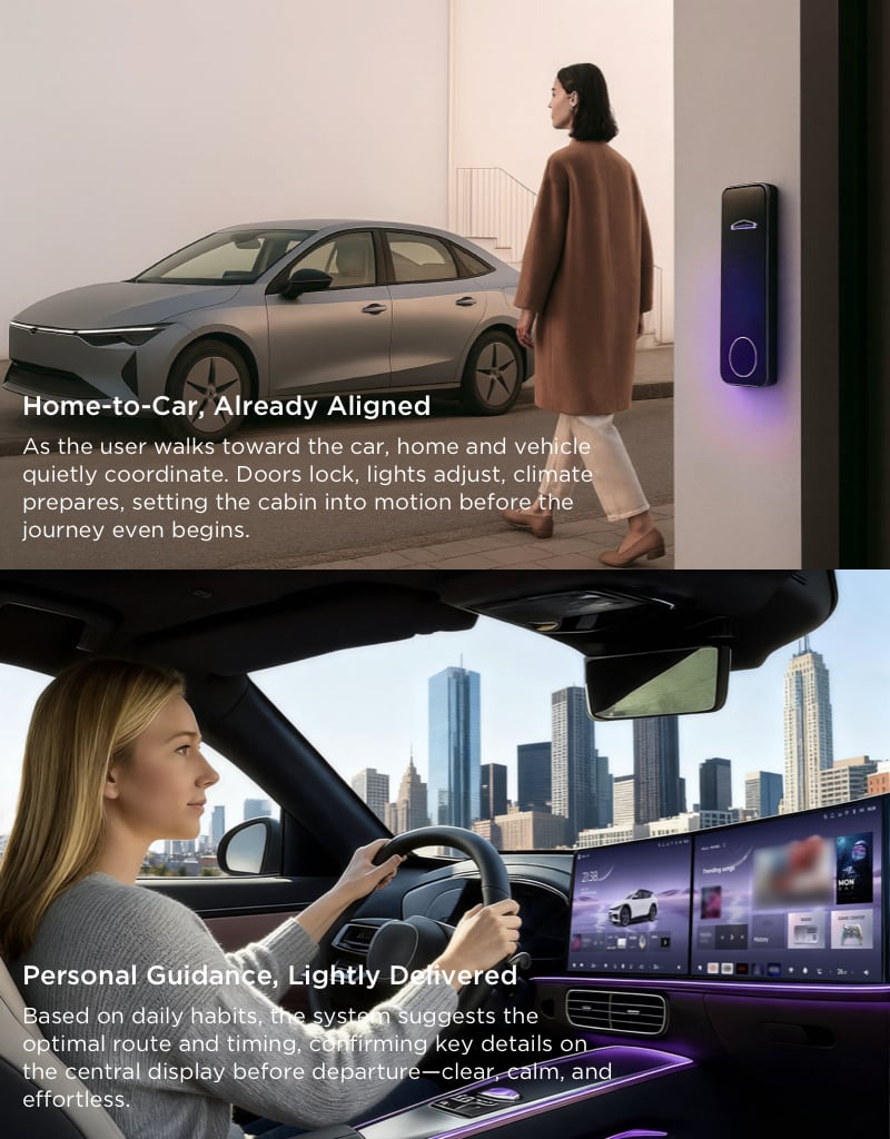 The LETOU - 乐投 Smart Cabin System is designed around a single, continuous narrative. Every trip becomes part of a larger flow, extending the comfort, intelligence, and emotional familiarity of home into mobility, and back again.