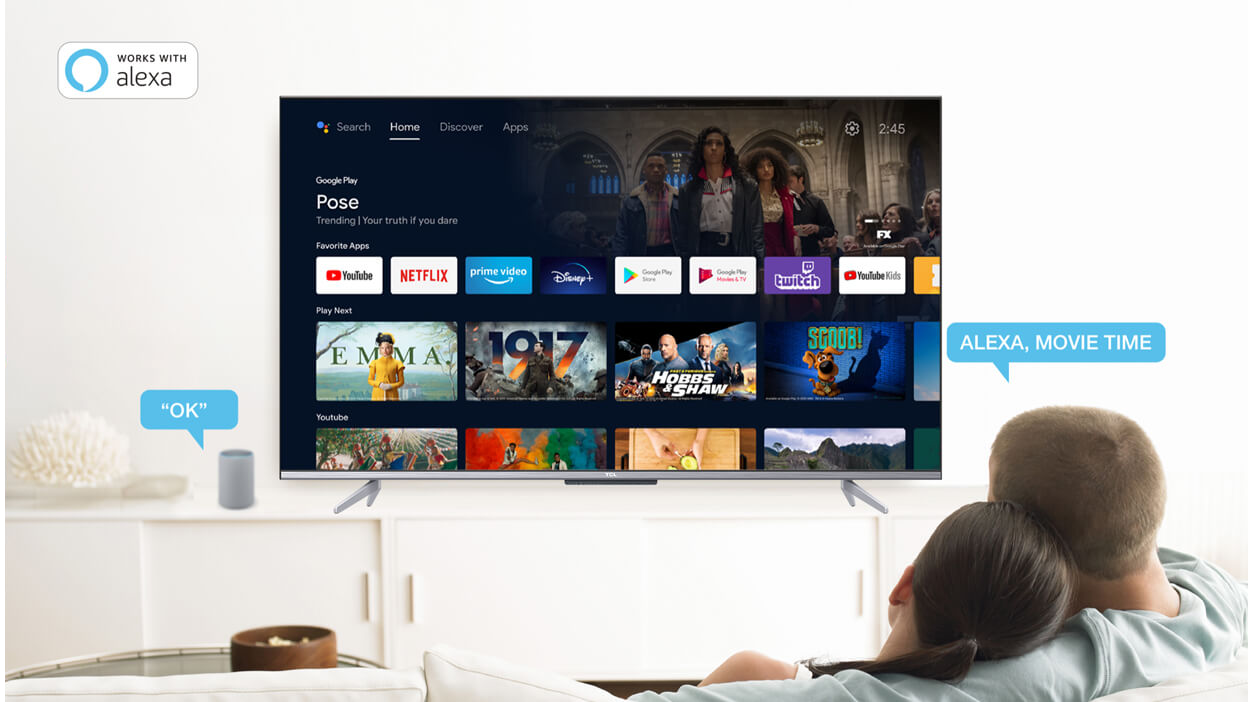 *Alexa compatibility allows you to use your Amazon Alexa devices, including the Amazon Echo, Echo Dot, Echo Show, Echo Spot, and Echo Plus (purchased separately), to control your TV.